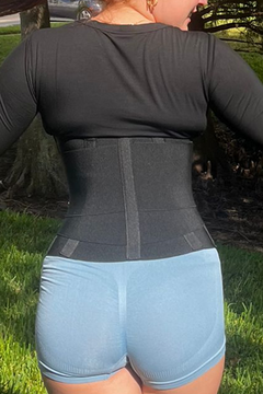 It’s a high-compression waist trainer belt designed to shape the waist, support core muscles, and enhance sweat production during workouts.